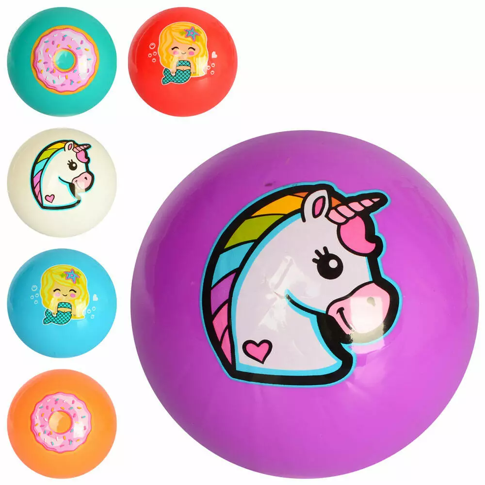 М'яч дитячий MS 2654 9 дюймів, малюнок, ПВХ, 60г, 3 види (русалка, єдиноріг, пончик), 6 кольорів.