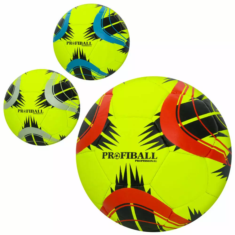 М'яч футбольний 2500-243 розмір 5, ПУ1, 4мм, ручна робота, 32 панелі, 420-440г, 3 кольори, кул.