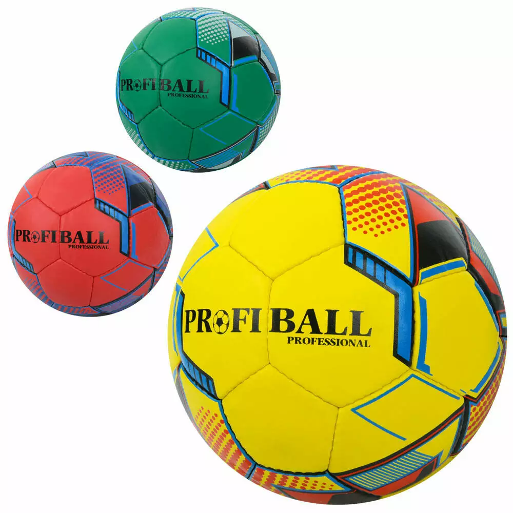 М'яч футбольний 2500-266 розмір 5, ПУ1, 4мм, ручна робота, 32 панелі, 400-420г, 3 кольори, кул.