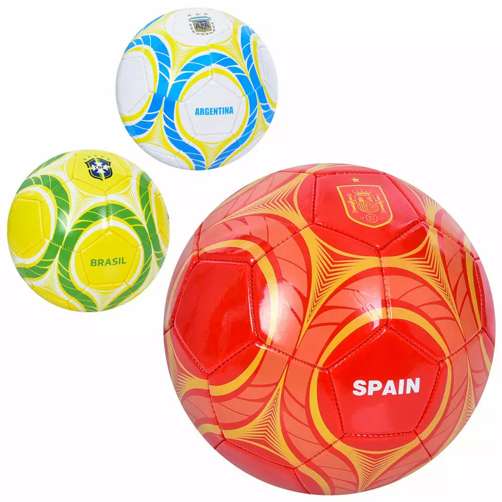 М'яч футбольний EN 3335 розмір 5, ПВХ, 1,8мм, 340-360г, 3 види (країни), кул.