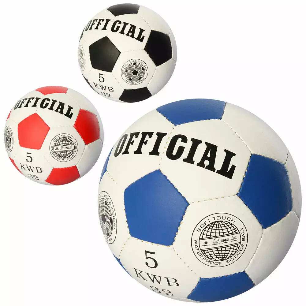 М'яч футбольний OFFICIAL 2500-203 розмір 5, ПУ, 32 панелі, руча работа, 280-310г,3 кольори,кул.