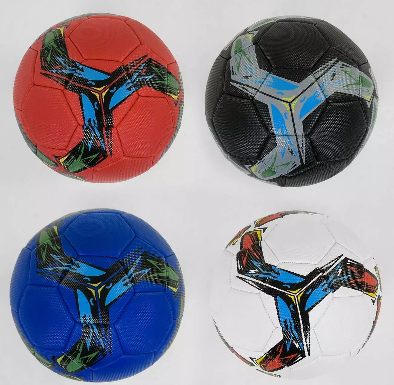Футбольний м'яч представлений в 4-х кольорах. Цей м'яч виготовлений з сучасного синтетичного матеріалу: PVC Розмір №5