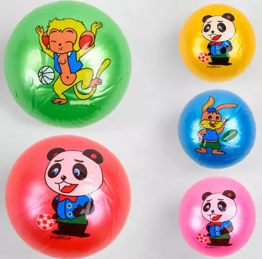 Вид - 5 видів. Тип малюнка - тварини. Розмір м'яча - 9 " Вага - 60 грам. М'яч з перламутровим ефектом.