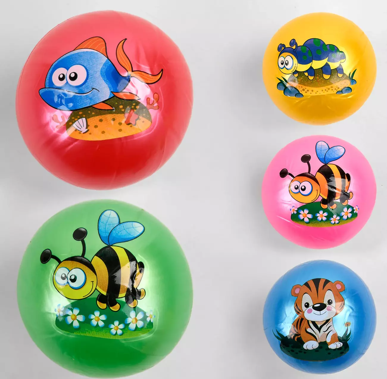 Вид - 5 видів. Тип малюнка - тварини. Вага - 60 грамів. М'яч з перламутровим ефектом.