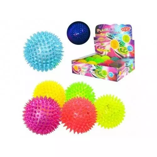 М'яч масажний MS 1137-1 пискавка, 12 шт. (6 кольорів) в диспл., світло, бат. (табл.), 38.5-26-6 см.