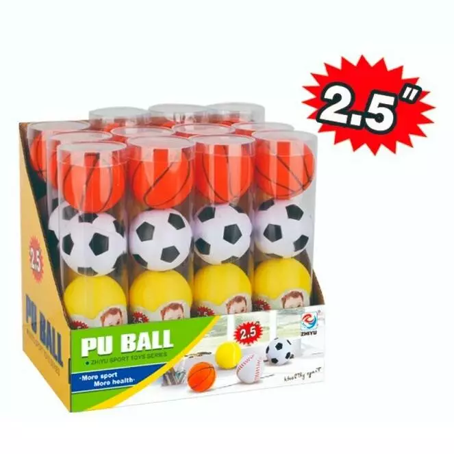 М'яч ZY116-1 фомовий, спортивний, набір 4шт., колба, 12шт. (4види) в диспл., 26,5-24,5-20см.