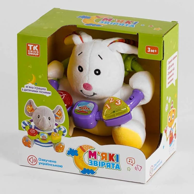 М'яке брязкальце 99100 (36) ""TK Group"", ОЗВУЧУВАННЯ УКРАЇНСЬКОЮ МОВОЮ, «Зайчик», пісні, світлові та звукові ефекти, в коробці