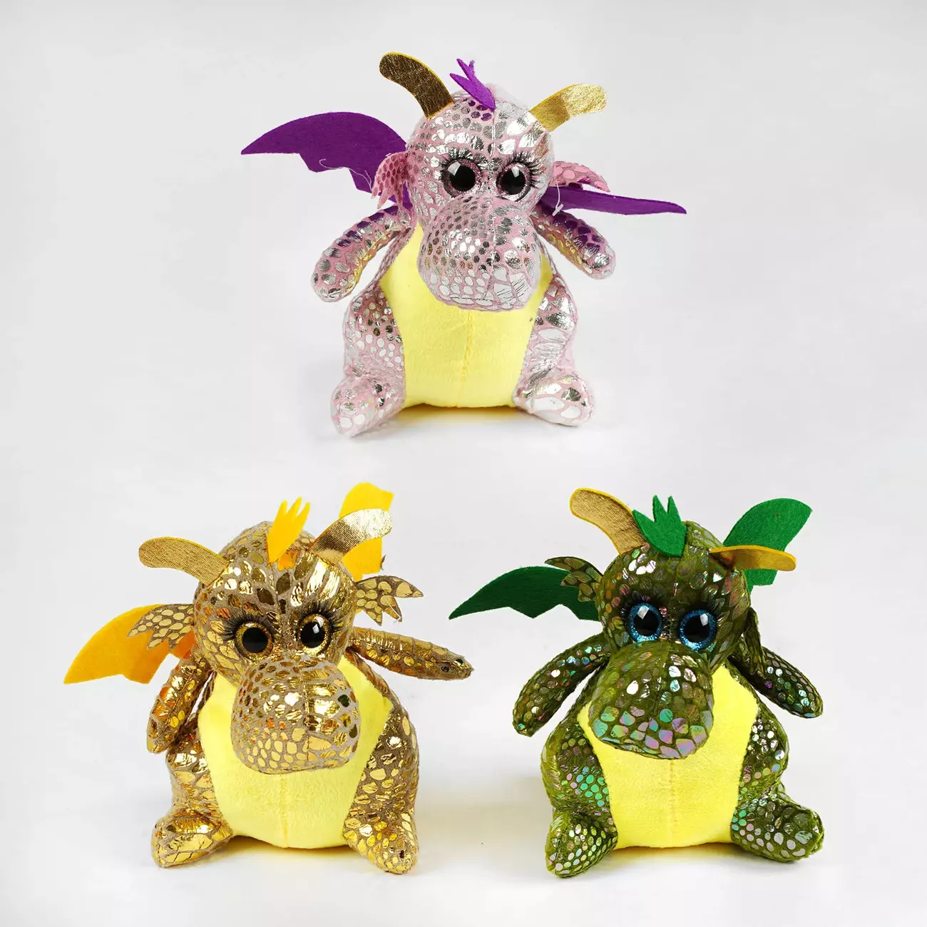 Тільки подивиться на цю красуню та на її величезні блискучі оченята, які прикрашені довгими м’якенькими війками. Побачивши таку іграшку, її одразу захочеться обійняти та пограти у веселу гру. Але це не просто гарна іграшка у вигляді дракона, це справжній символ наступного року, який буде радувати нас своєю присутністю та даруватиме позитивні емоції під час гри. Особливості: - іграшка представлена у вигляді дракончика; - розмір: 17х17х21 см; - матеріал верху — приємний на дотик текстиль, наповнювач — синтепон; - іграшка виконана у приємній оку колірній гамі; - м’які іграшки сприяють розвитку сенсорно-зорового сприйняття та творчого мислення дитини, заспокоюють та дарують лише позитивні емоції; - дозволяють втілювати у життя казкові ігрові сюжети.