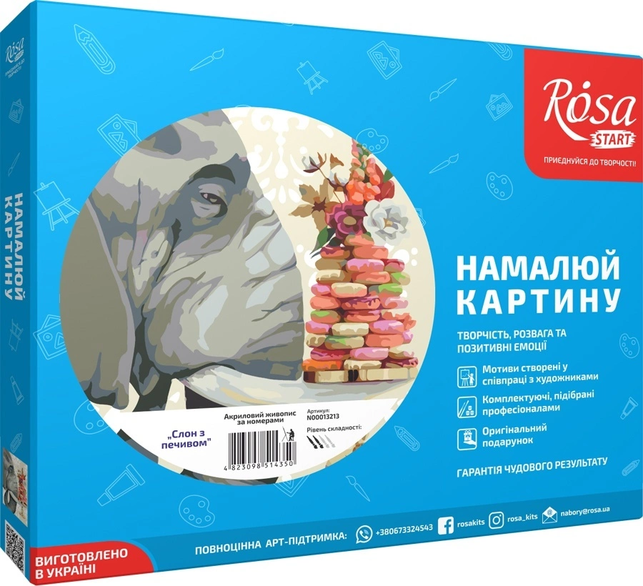 Набір акриловий живопис за номерами, „Слон з печивом“, 35х45см, ROSA START