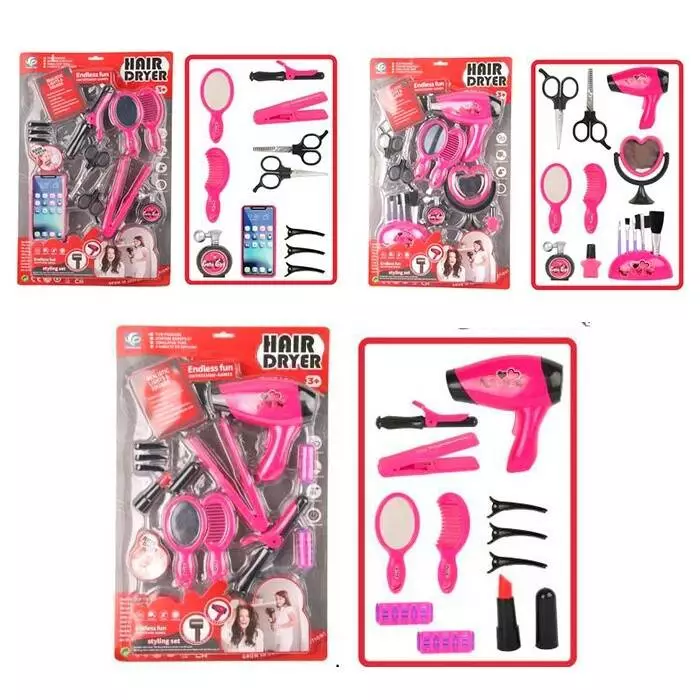 Набір аксесуарів YF820A-1-4 набір перукаря,ножиці,дзеркало,гребінець,аксес.,3види(плойка,2види-фен)