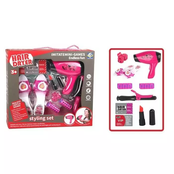 Набір аксесуарів YF820C-1 туфлі, набір перукаря (фен, бігуді, плойка, помада), бат.,кор.,33,5-30-7см
