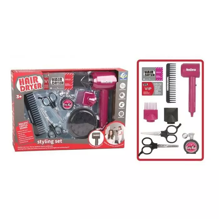 Набір аксесуарів YF820D-1 набір перукаря, фен, ножиці, гребінець, флакон, бат., кор., 39-26-7 см.