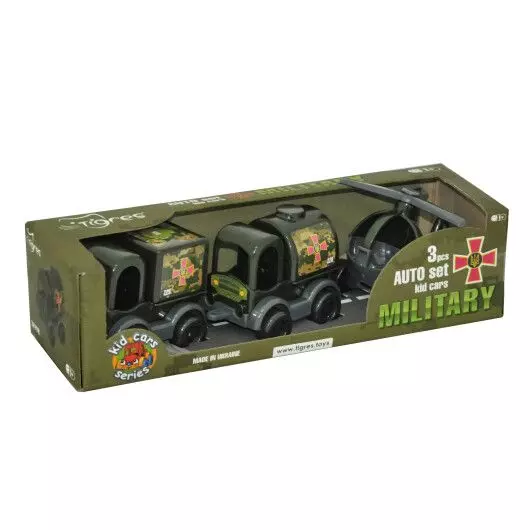 Набір авто "Kid cars" військовий 3 шт. - серія тематичних іграшкових авто Kid Cars. Тематичні іграшкові моделі для дітей 1+ Набір може бути в 3х різних комплектаціях : - гелікоптер, контейнер, самоскид - гелікоптер, бензовоз, контейнер - гелікоптер, бензовоз, самоскид Кожна іграшка прикрашена тематичними наклейками. Машинки можна з'єднувати між собою за допомогою спеціальних кріплень Іграшкові машинки дуже схожі на реальні моделі наземного військового транспорту, моделі мають рухомі елементи, що робить гру цікавою і реалістичною. Завдяки невеликим розмірам іграшка стане улюбленим супутником малюка й справжньою перлиною для маленьких колекціонерів. Пакування - картонна коробка Вік: 1+