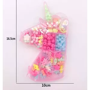 Маленькі кольорові краплинки розкривають перед дитиною нескінченні можливості для творчості. Гармонія відтінків у поєднанні з фантазією дитини дозволяють створювати унікальні прикраси для себе та друзів. Намистинки з набору мають різноманітні форми й текстури, які нададуть вашому браслету цікаву структуру і індивідуальний характер. Особливості: - зручний пластиковий бокс-органайзер; - цікавий дизайн у формі єдиноріжки; - велике розмаїття намистин різних кольорів та форм; - для плетіння браслетів до набору додається леска; - намистини виготовлені з якісного первинного пластику.