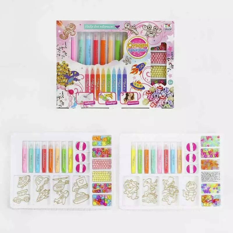 Набір бісеру ТК 1701-12 (48/2) ""TK Group"", намистини, вітражні фарби, брелки, в коробці