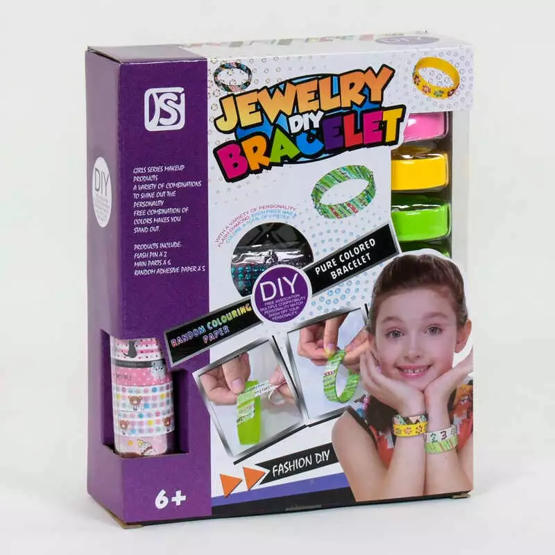 Набір браслетів 893 (36) 6 шт., стрази, кольоровий скотч, у коробці