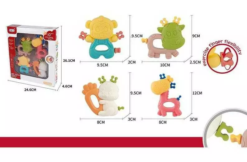 Набір брязкалець 668-93 (72) 4 штуки, тваринки, прорізувач, в коробці
