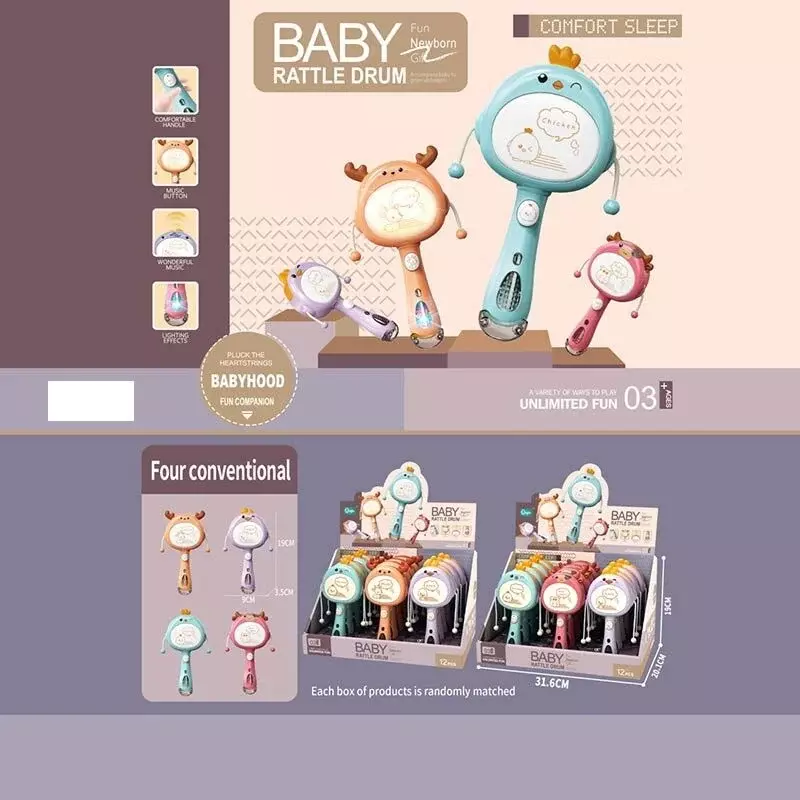 Набір брязкалець HY 629 (16/2) ЦІНА ЗА 1 ШТУКУ, В БЛОЦІ 12 ШТУК, пісенька, підсвічування, колотушка, в коробці