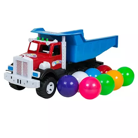 Самоскид з відкидним ковшем, наповнений яскравими пластиковими кульками (діаметр - 7 см.), -11 шт підійде для будівництва та підвезення матеріалів, перевезення улюблених іграшок та ігри з ними! Чудова іграшка для сюжетно-рольових ігор, де дитина знайомиться з реальною технікою – потужними професійними автомобілями, дізнається про особливості їх будови та способи використання! У наборі: машина та 8 пластикових кульок.довжина 52 см-ширина 20 см-висота21,5 см Упаковка:Сітка Вага (кг):1000 г .