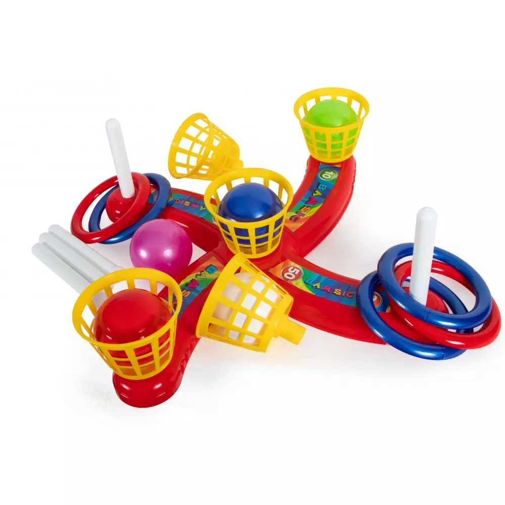Кільцекид із пасткою від "Bamsic" - це відразу 2 гри в одній! Кільцекид – це динамічна спортивна гра для дому та вулиці, суть якої полягає в попаданні в ціль. Така проста, але захоплююча гра, створена спеціально для тренування влучності та спритності. Мета гри: потрапити кульками в кошик чи кільцями на стовпчики та набрати більше балів, ніж суперник. особливості: - іграшка поєднує в собі відразу 2 гри: кільцеброс і пастку; - Розмір платформи - 50 см; - платформа прикрашена наклейками із зображенням кількості окулярів; - Яскраві кольори ігрових елементів; - приємні на дотик кульки, діаметром 7 см; - іграшка виготовлена з якісного та безпечного для здоров'я дітей пластику. Комплектація: - заснування; - 5 кульок; - 5 стовпчиків; - 5 кошиків; - 5 кілець.