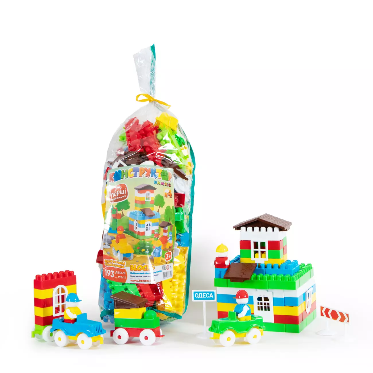 Конструктор BAMSBLOCK №4 193 деталей. Даний конструктор виготовлений з нетоксичного пластику та всі його деталі надійні та безпечні. Конструктор міцний, легкий, має яскраві деталі, дуже простий у експлуатації та розрахований на тривале використання. Завдяки іграм із конструктором дитина розвиває не тільки моторику рук, а й розумове мислення.
