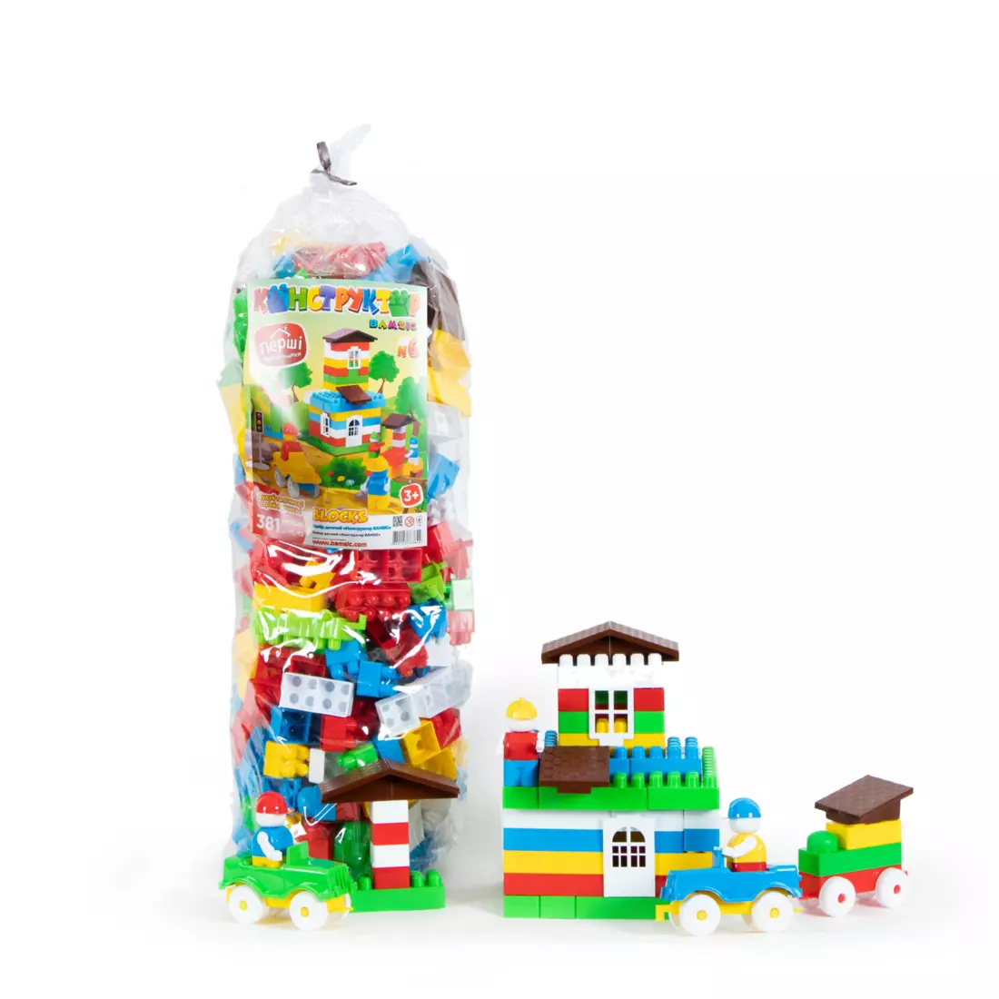 Яскравий пластиковий конструктор, що складається із 381 деталі досить великого розміру. Конструктор розвиває дрібну моторику рук, фантазію та уяву. У наборі є всі деталі для гри. Упаковка: Пакет Вага в упаковці: 2700 г Габарити в упаковці: 24 x 80 x 24 см Країна виробник: Україна Матеріал: Пластик Комплектація: 381 деталь