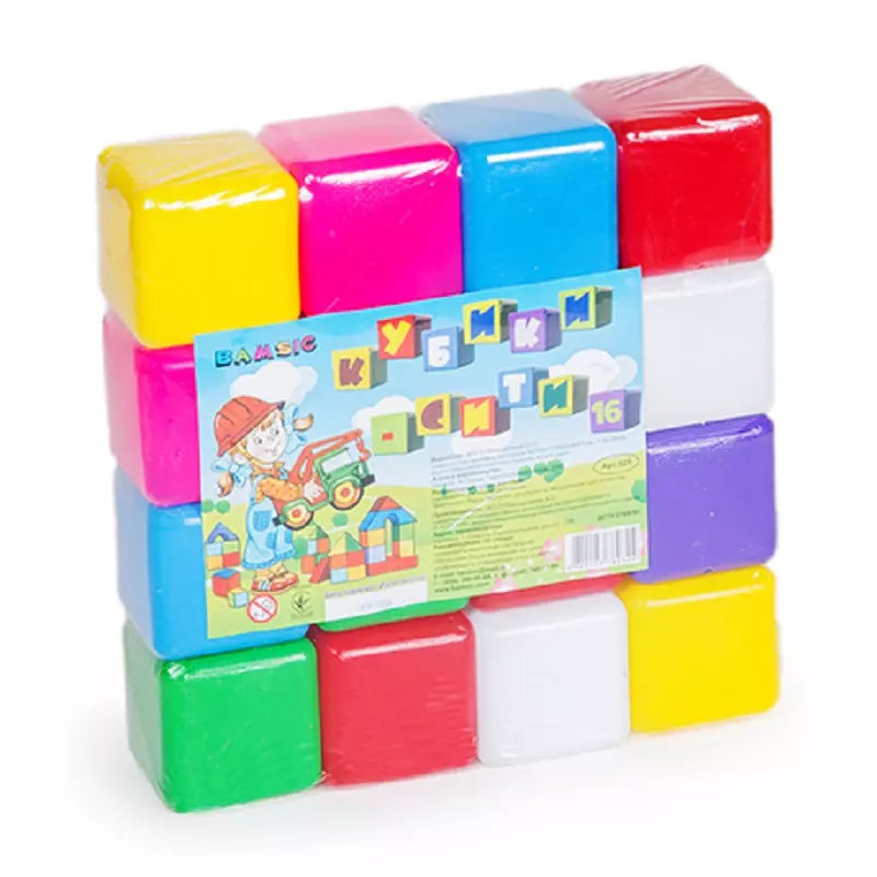 Набір кольорових кубиків 16 шт. Розмір кубика 6*6*див. Розмір упаковки 24*6*24 см. Вага 260 г.