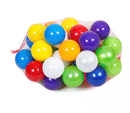 Набір різнокольорових пластмасових кульок у сітці діаметр кульки 9 см. У наборі 50 кульок. Розмір набору 68*25*25 см. Вага 760