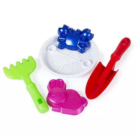 Пісочний набір у сітці. Яскравий, пластиковий, різнокольоровий. Зробить з лопатки, грабель, сита і двох пасочок. Продукція виконана з екологічно чистої та високоякісної сировини. Розмір іграшки 26*20*6 см. Вага 100 г