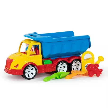 Великий та неймовірно крутий, яскравий та стильний самоскид стане прикрасою будь-якої колекції іграшкового транспорту. У автомобіля великий відкидний кузов, в якому зручно перевозити будь-який вантаж. У комплекті з машинкою йде лійка, пасочка, лопатка та граблі для зручної гри з піском.