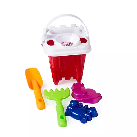 Набір дитячий "Відро №5 + лопата, граблі, пасочки". Набір складається з відра, лопатки, грабель та двох пасочок. Розмір відра 16 * 17 * 16 см. Вага 240 г.