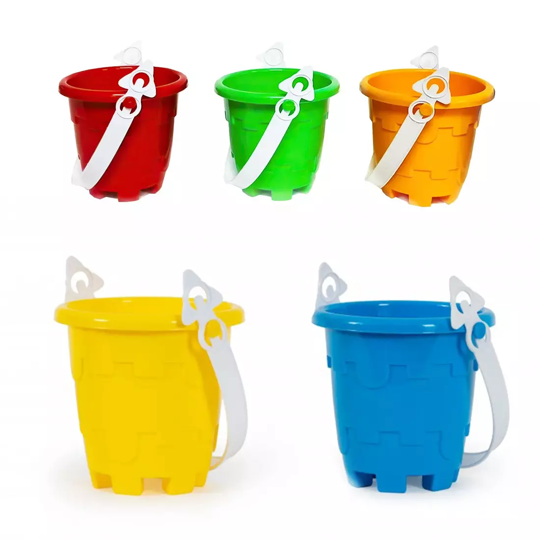 Яскраве відерце у формі вежі старовинного замку із зручною ручкою для гри в піску та саду. Відро виконане із пластмаси, з наклейкою.