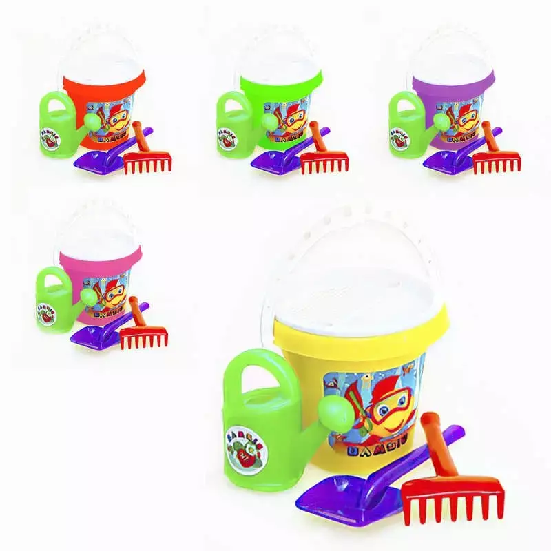 Набір дитячий «Відро «Класик» №3 012/9 Яскравий, пластиковий, різнокольоровий. Продукція виконана з екологічно чистої та високоякісної сировини. Складається з цебра, лопати, грабель, сита та лійки. Розмір іграшки 16*20 см. Вага 280 г.