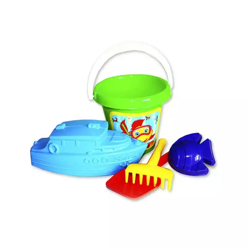 Набір дитячий «Відро «Класик» №5 арт.1248 Яскравий, пластиковий, різнокольоровий. Продукція виконана з екологічно чистої та високоякісної сировини. Складається з цебра, лопати, грабель, сита, пасочки та кораблика. Розмір іграшки 16*20 см. Вага 300 г.
