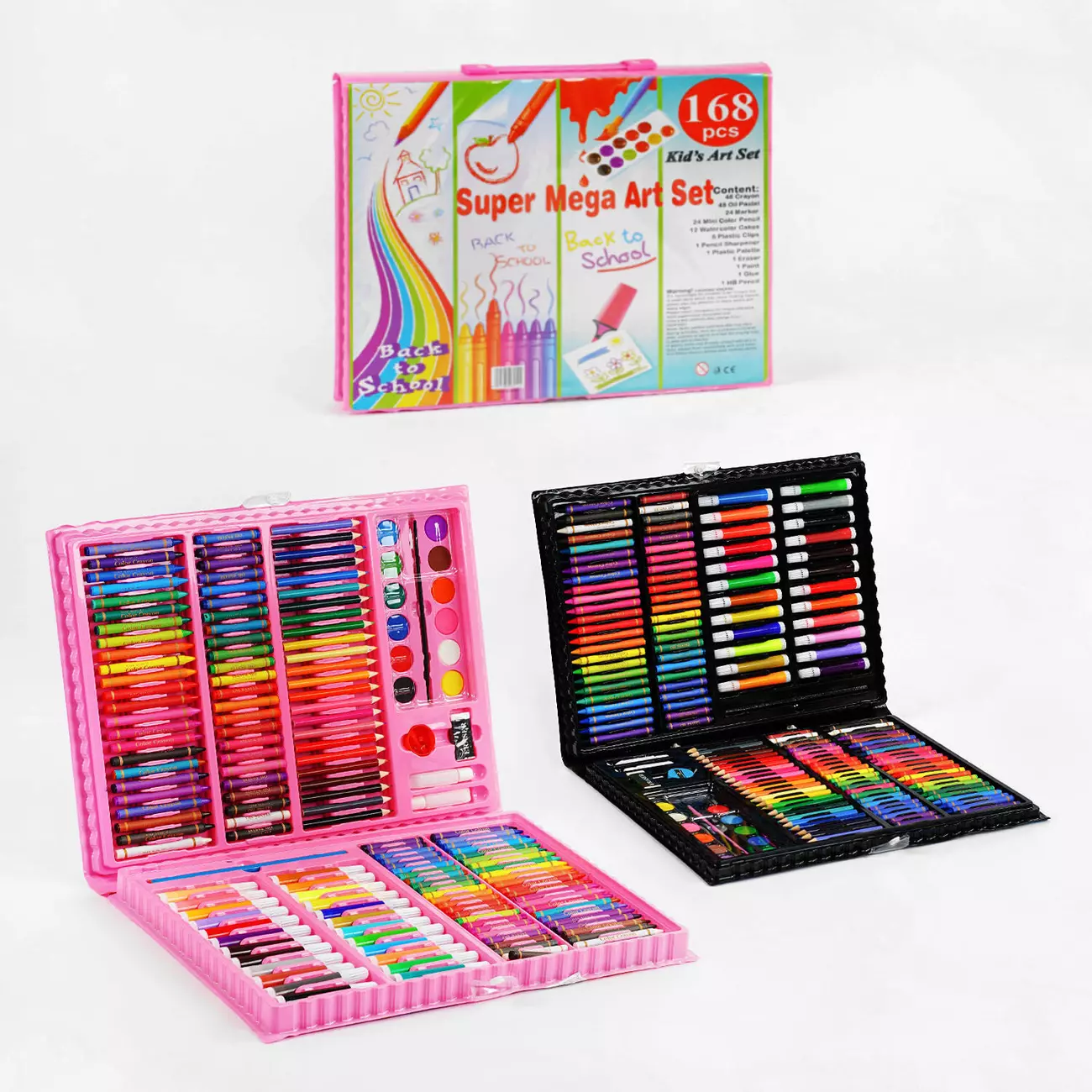 Юні майстри живопису не перестають мріяти про нові пензлики, фарби та олівці, щоб мати можливість творити, вимальовуючи на папері шедевр за шедевром. "Super Mega Art Set" надасть дитині можливість спробувати у художніх роботах різні техніки та матеріали: від олівців до фломастерів, від акварелі до олійної пастелі. особливості: - Набір для творчості містить 168 предметів; - зручна валізка компактно розміщує всі елементи в одному місці, виділяючи для кожного окреме місце. Набір містить: 48 шт. масляної пастелі; 48 кольорів воскової крейди; 48 кольорів воскової крейди; 24 маркери; 24 кольорові олівці; 24 кольорові олівці; 12 кольорів акварельних фарб; 5 аркушів для малювання; 1 простий олівець; 1 точила; 1 гумка; 2 пляшечки з клеєм; скріпки.