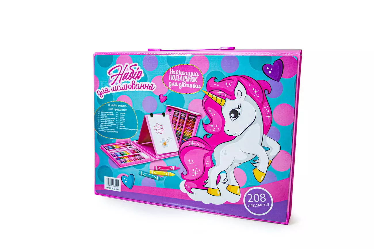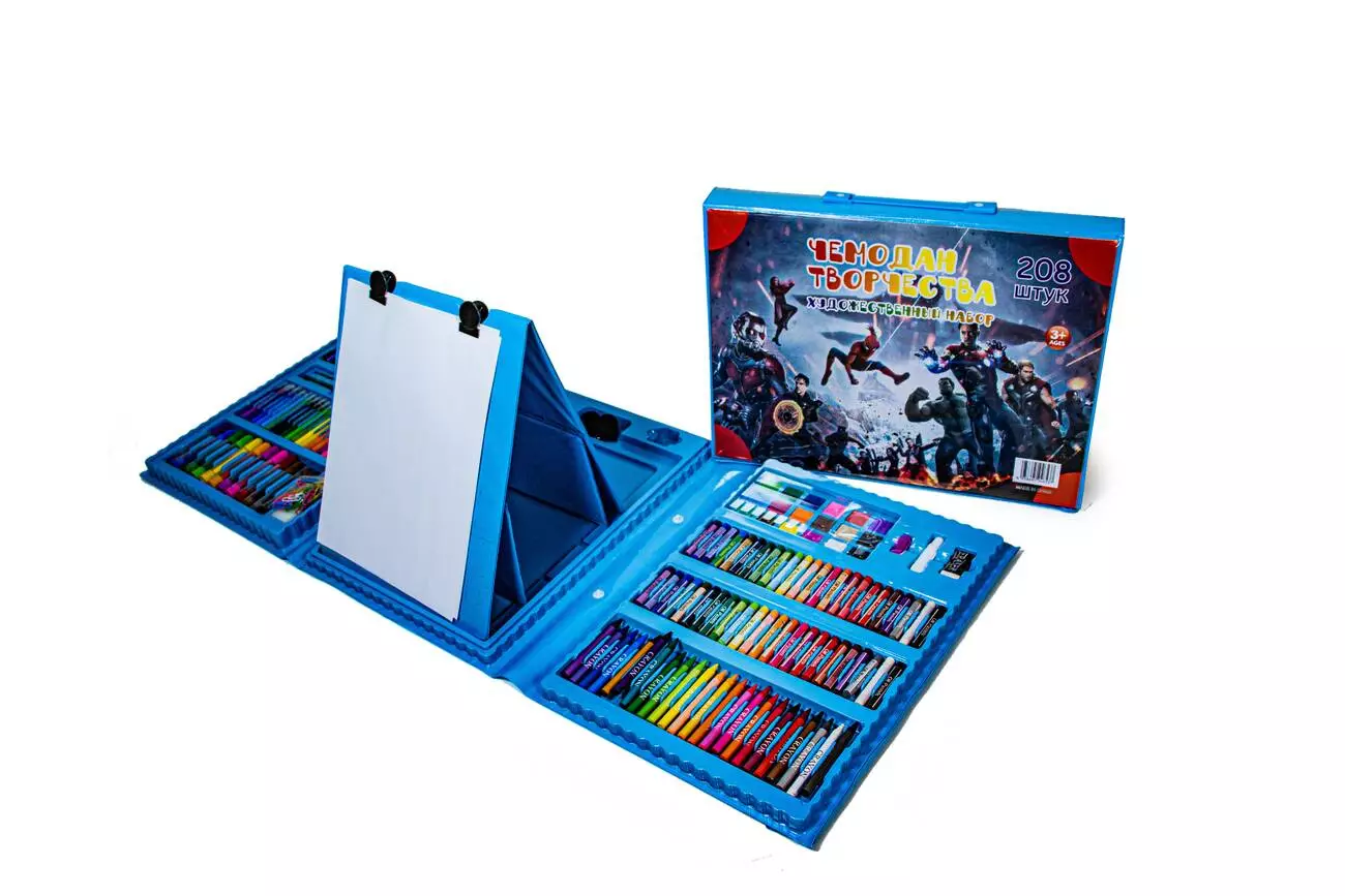 <p>Мультинабор для творчества поможет ребенку научиться рисовать, активизирует его познавательную деятельность и воплотит в жизнь его творческие идеи. Рисование позитивно скажется на развитие детского воображения, фантазии, сообразительности, абстрактном мышлении, координации движений, творческих навыков.</p><br /> <p>Набор юного художника – это большем чем игрушка. 208 ярких и качественных предметов для проявления творческих способностей и креативности ждут Вашего ребенка в удобном формате.</p><br /> <p>В наборе:</p><br /> <p>- 48 цветных восковых мелка;</p><br /> <p>- 24 восковых цветных карандаша;</p><br /> <p>- 24 цветных карандаша;</p><br /> <p>- 12 цветных мини маркеров;</p><br /> <p>- 18 цветных акварельных красок;</p><br /> <p>- 10 листов бумаги;</p><br /> <p>- 1 мольберт;</p><br /> <p>- 4 зажима для бумаги;</p><br /> <p>- 35 скрепок;</p><br /> <p>- 1 простой карандаш;</p><br /> <p>- 1 стирала;</p><br /> <p>- 1 точилка;</p><br /> <p>- 1 губка;</p><br /> <p>- 1 линей;</p><br /> <p>- 1 ластик;</p><br /> <p>- 1 кисточка;</p><br /> <p>- 1 тюбик клея.</p><br />