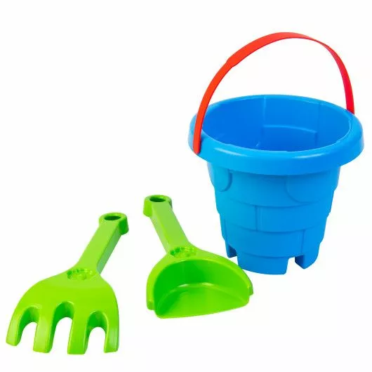 Набір для піску «Вежа» 3 елементи - чудовий, яскравий, барвистий набір. Сподобається будь-якому малюкові. За допомогою цього набору, граючи, дитина навчиться створювати свої перші скульптурні шедеври. У набір входять: відерце, лопатка, грабельки. Гра в пісочниці з набором «Вежа» сприяє розвитку мислення у дітей, просторової уяви, уваги, дрібної моторики рук. Довжина 14 см / висота-24 см / ширина-14 см