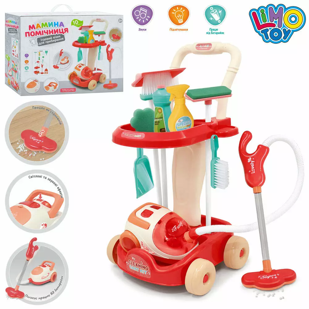 Набір для прибирання 8009 візок,пилосос-пенопластові кульки,щітки,10предм.,муз.,світло,бат.,кор.,49
