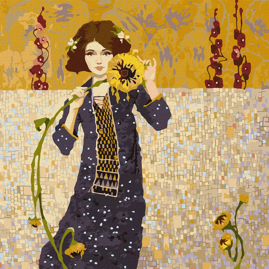Набір для розпису по номерах. "Дівчина з соняшником" 40х40см
