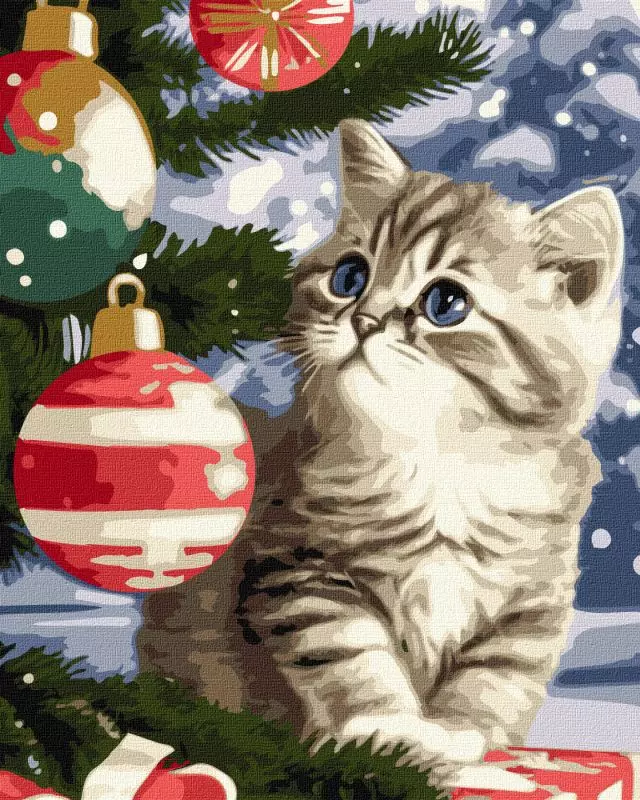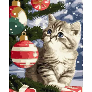 Набір для розпису по номерах. "Кошеня під ялинкою" 40х50см
