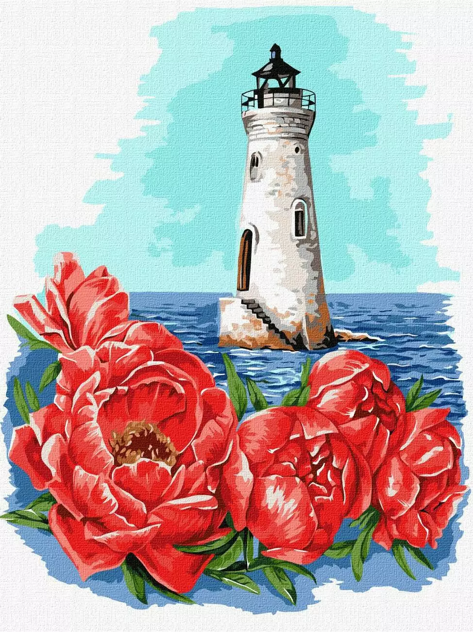 Набір для розпису по номерах "Маяк з півоніями" 30х40см