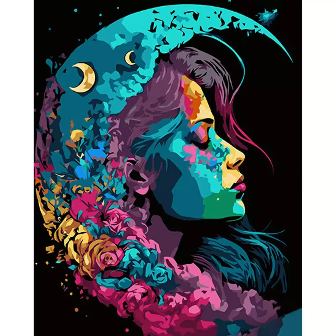 Набір для розпису по номерах Місячна дівчина Strateg на чорному фоні розміром 40х50 см (AH1011)