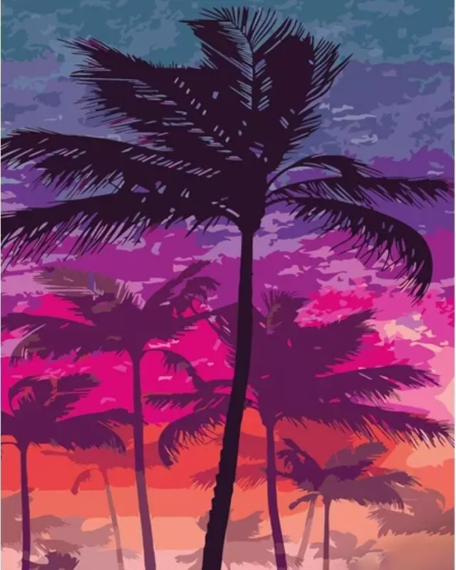 Набір для розпису по номерах Пальми на заході сонця Strateg розміром 40х50 см (GS1539)