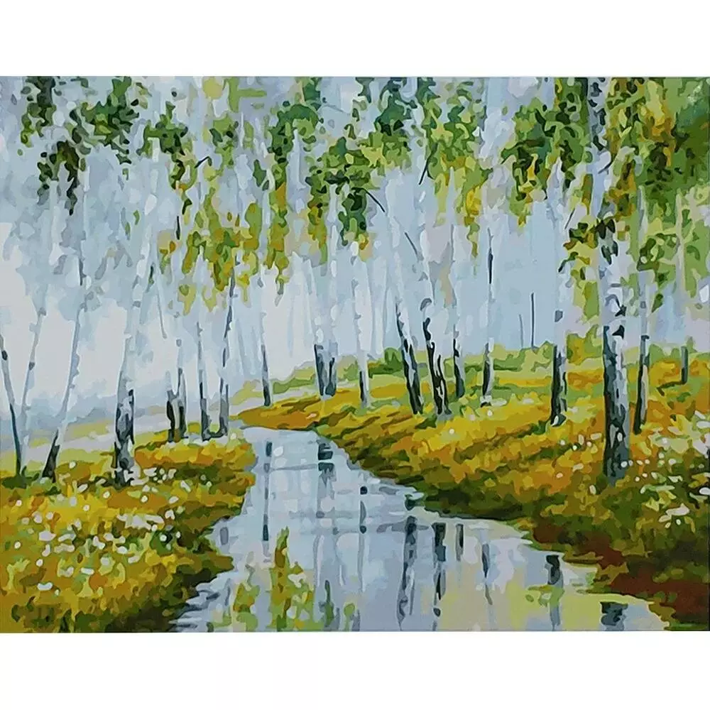 Набір для розпису по номерах Річка серед беріз Strateg розміром 40х50 см (GS110)