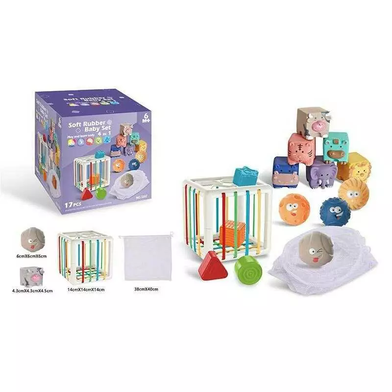 Набір для розвитку 1287 (27) куб з еластичною решіткою, сенсорні кубики та м’ячики, в коробці