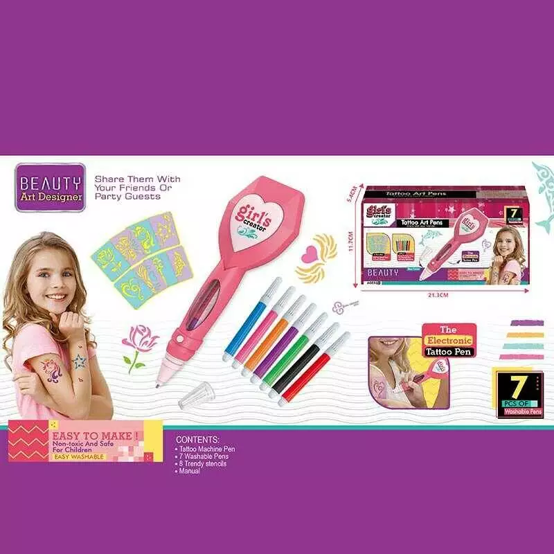 Набір для татуювань MBK 382 Y (72) машинка на батарейках, трафарети, фломастери, в коробці