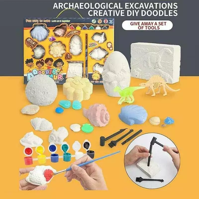 Набір для творчості 222-10 (48), фарби, 3 фігурки для розмальовування, 6 фігурок для розкопок, фарби, пензлик, інструменти, в коробці