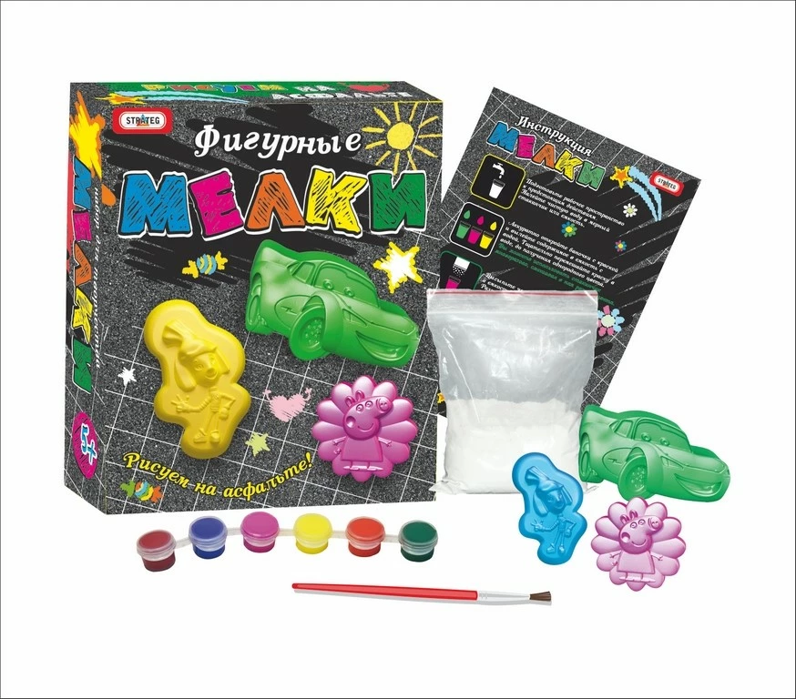 «Фігурні крейда» набір для творчості, для веселої забави - розпису по асфальту або ж покоління улюбленої гри «класики»! Але грати в ігри з таким набором цікавих, адже фігурки-крейда створені своїми руками! За допомогою батьків, згідно інтструкціі дитина створює барвисті тематичні крейда-фігурки - тварин, транспорт, героїв мультфільмів, морських мешканців, вибираючи їх колірну гамму на свій розсуд. У наборі є все необхідне: формочки (лсіт з чотирьма фігурками на тему "Морські мешканці", "Транспорт", "Мадагаскар", "Мультфільми", "Навколишній світ"), суміш, фарби. Такими крейдою також добре малювати картинки на звичайній дошці для крейди, мольбертах. Пропонуємо зібрати всю колекцію, або ж купити набір 5 в 1, в якому 5 аркушів для лиття фігурок. Набір упакований в красиву коробку з щільного картону. Форму можна застосовувати багаторазово.