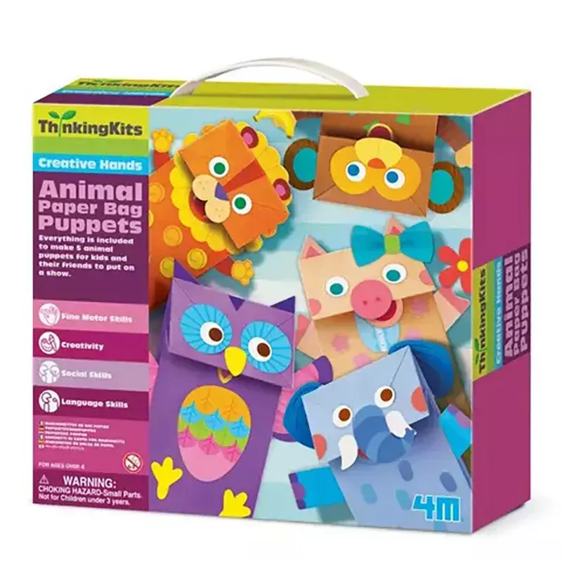 STEAM-набір 4M Звірятка з паперового мішечка містить усе необхідне для створення п'яти паперових ляльок у формі тварин. Приготуйтеся до шоу! Зроблено в Китаї. Як використовувати Як же перетворити звичайнісінький паперовий мішечок на кумедну тваринку? Якщо ви тримаєте в руках цей набір від бренду 4M - півсправи зроблено! Адже він містить усе необхідне для створення п'яти тварин: поросяти, сови, мавпочки, лева і слона. Дотримуйтесь вказівок в інструкції, вирізайте, клейте та влаштовуйте ляльковий театр просто у себе вдома! Кому подарувати Цей набір призначений для дітей старше 4 років. Він сприяє розвитку дрібної моторики, уяви, соціальних і мовленнєвих навичок. Створення ляльок може потребувати допомоги дорослих, але здійснення вистави можна сміливо довірити дітям! Про виробника Науково-пізнавальні набори 4М - це простий і цікавий спосіб вивчення різноманітних фізичних явищ, принципів конструювання та застосування альтернативних джерел енергії. Найкраще такі набори пасують дітям шкільного віку, адже саме в цей час вони неабияк допитливі та прагнуть дослідити увесь світ у найкоротші терміни. В асортименті виробника ви знайдете цікаві набори для дослідження природних явищ, проведення експериментів, конструювання роботів і механізмів тощо. Характеристики Габарити упаковки 240 ? 220 ? 60 мм Вік 4+ років Комплектація STEAM-набір 4M Звірятка з паперового мішечка 00-04672 - 1 шт. Інструкція - 1 шт.