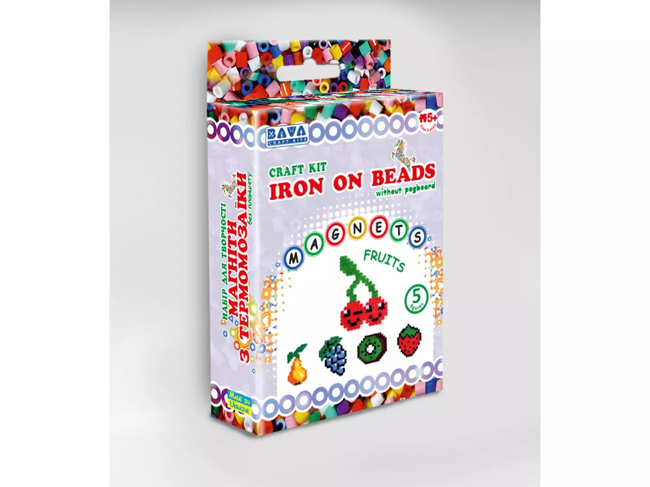 За допомогою нашого набору Ви зможете зробити 5 яскравих і барвистих магнітів з термомозаіки. Зберіть на планшеті фігурки за схемами, пропрасуйте праскою через термобумагу, приклейте магнітну стрічку і магніт готовий! Розмір коробки ДхШхВ см -10*3,3*14 з європідвісом. У наборі: кольорові намистини, термопапір, магнітна стрічка, інструкція. Для дітей від 5 років.